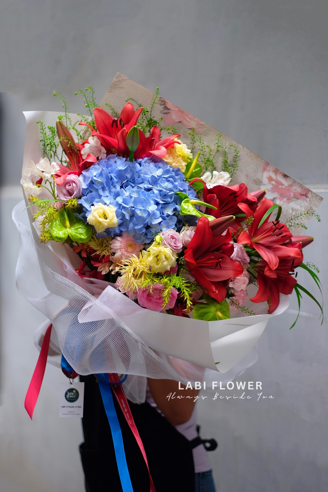 Ngoài các mẫu hoa được thiết kế sẵn, Labi Flower cũng nhận thiết kế hoa theo yêu cầu hoặc dựa vào ngân sách của khách hàng đưa ra. Hãy inbox hoặc gọi hotline 0939515482 để nhận tư vấn thêm từ Labi Flower nhé.