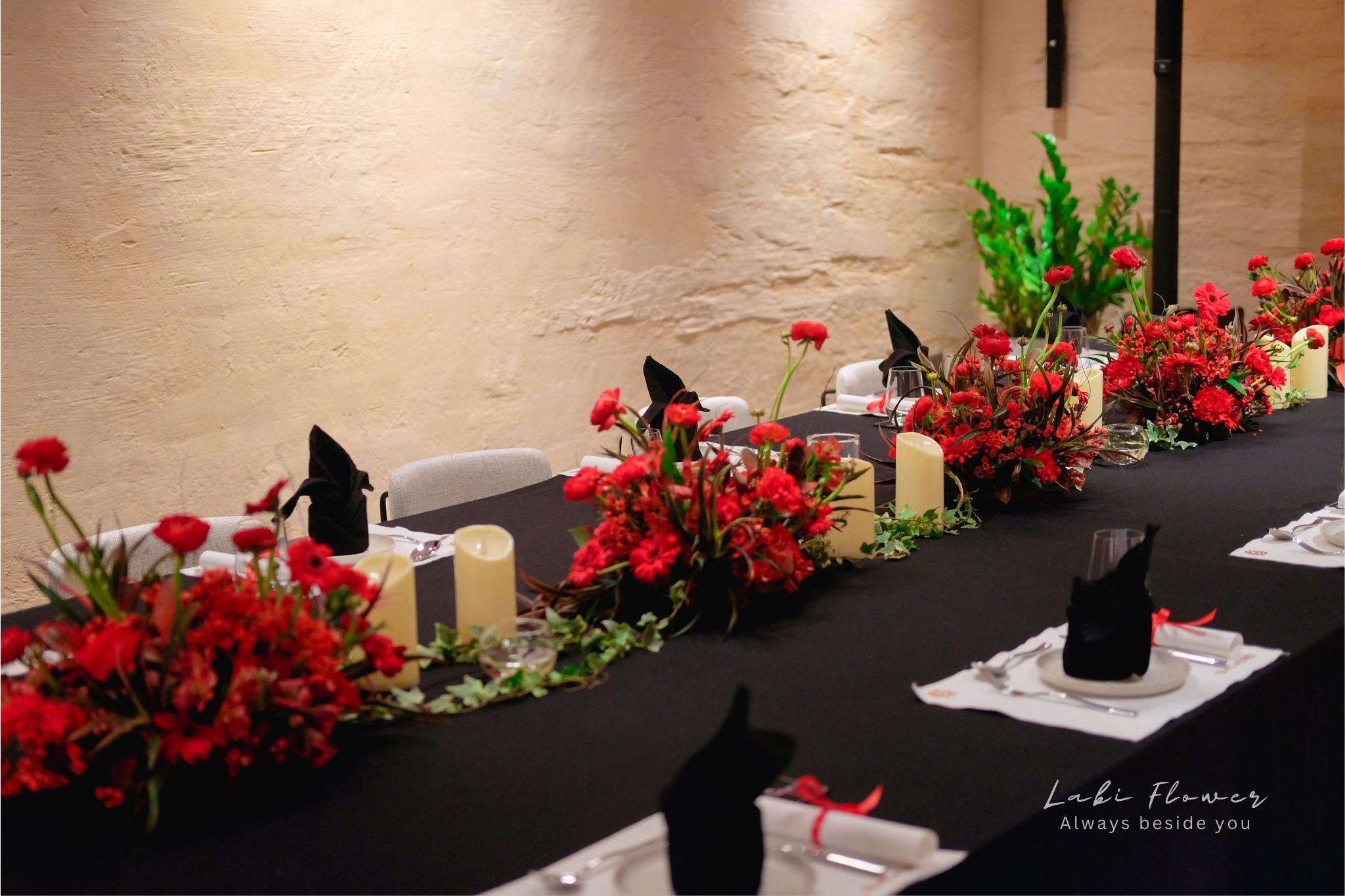 Hoa mao lương được trang trí làm tăng phần sang trọng cho không gian buổi tiệc