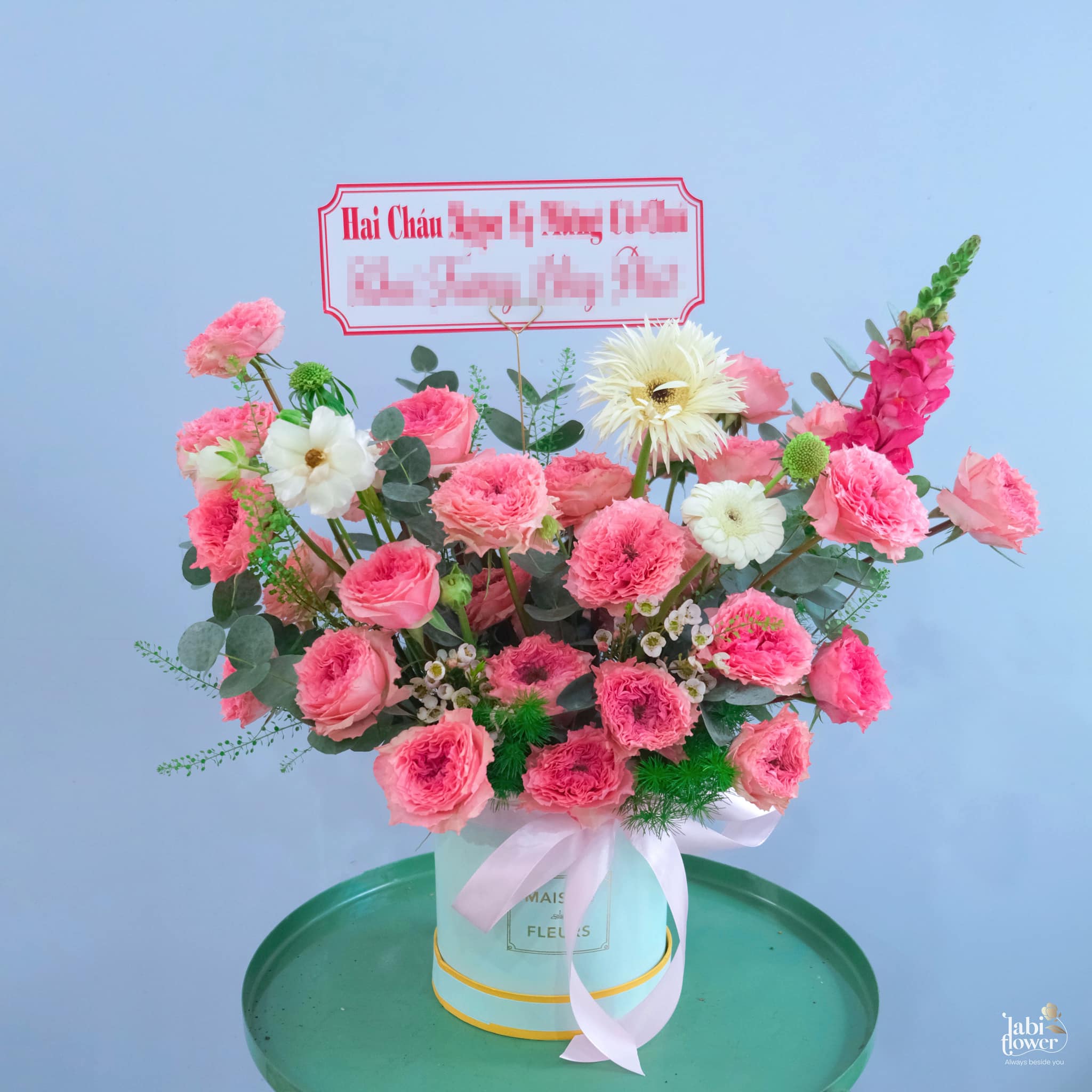 Ngoài các mẫu hoa được thiết kế sẵn, Labi Flower cũng nhận thiết kế hoa theo yêu cầu hoặc dựa vào ngân sách của khách hàng đưa ra. Hãy inbox hoặc gọi hotline 0939515482 để nhận tư vấn thêm từ Labi Flower nhé.